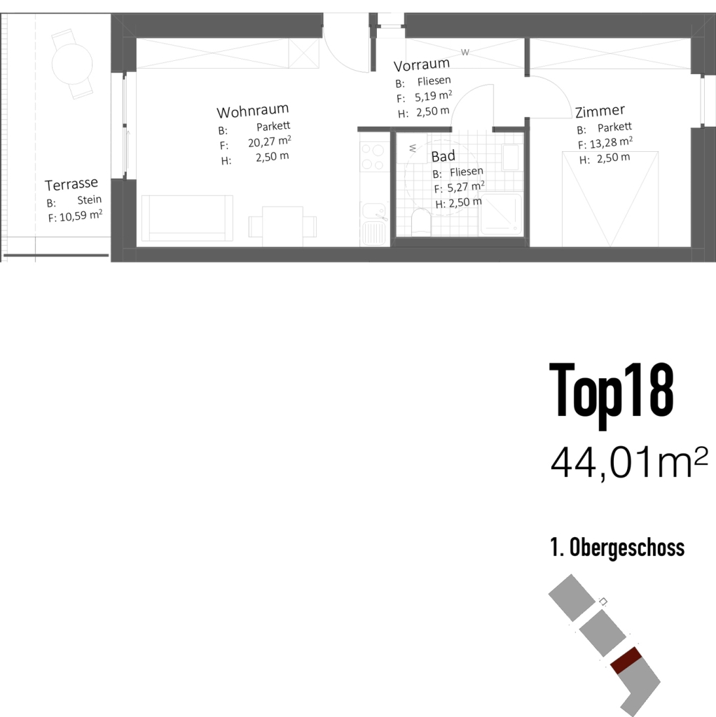 Wohnungsgrößen: 45 m²
